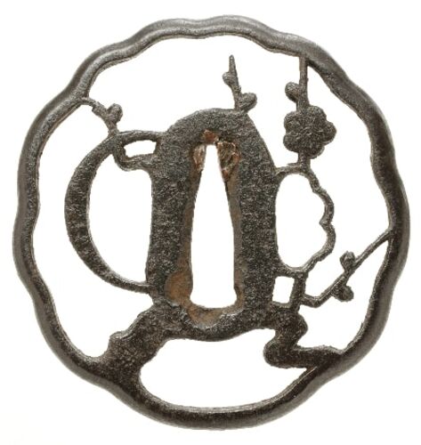 梅見月図鍔 古赤坂 梅見月図鍔 古赤坂 梅を家紋の図案として採り入れた例では先の加賀前田家が有名。前田家のは梅鉢紋。 ちょうど今頃の季節…、というか昨日の帰り道、ふっと気づいたら東の空に大きな月があり…もちろん梅が満開。月に照らし出された梅花に、…