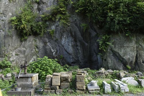 《鎌倉八百ヶ谷戸》Web写真集 浄智寺の駐車場に、鎌倉石の転石、どこかの礎石であろうか、方形に切り出された古い鎌倉石が置かれている。 いずれ、どこかで使うつもりなのだろう。 ただのざらついた石の塊なのだが、存在感がいい。