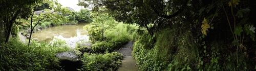 《鎌倉八百ヶ谷戸》Web写真集(PCの大画面で見てほしい) 開発が進んで山の上の方まで宅地で埋め尽くされている。 谷戸の規模からすると、水田はこの池の周りぐらいであったかと思う。 池の水は坂を降って行合川に流れ込む