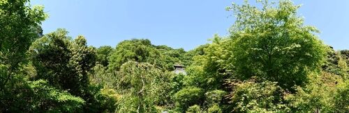 《鎌倉八百ヶ谷戸》Web写真集(PCの大画面で見てほしい) 光則寺 この屋根で判る ちょっと前はヤマフジが良い色合いだったのに・・・ でも緑に様々な緑があってこれもいい