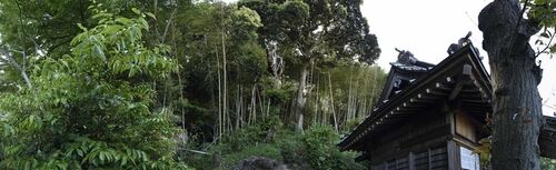《鎌倉八百ヶ谷戸》Web写真集(PCの大画面で見てほしい) 曲がりくねった旧道が遺されている 山襞も遺されている そんな山襞の上の三島神社 そもそも山際まで掘削されているため神社は急斜面にある 崖上の大木に掛けられている梯子を見ると 背後の山林の管理…