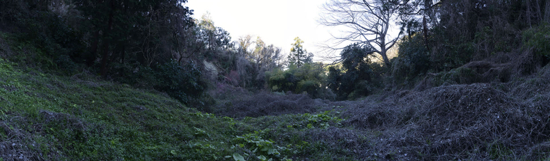 前回紹介したのは、大町から名越の切り通しへと向かう入口を、明治初期の地図に従って歩いてみようと試みた結果、藪がひどくて断念したという写真。