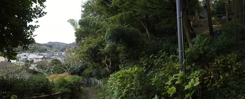 2020-11-15 山ノ内から瓜ヶ谷へ 環境遺跡 鎌倉の谷戸 《鎌倉八百ヶ谷戸》Web写真集 山ノ内から瓜ヶ谷へ、急峻な山の斜面が宅地として利用されている。 崩落防止のため、脆弱な岩肌を覆うように芝や笹など背の低い草花を植えていることが多い。 その合間に生垣が続いている。 大きな木が倒れて斜面を崩しているところもある。 急坂で上り下りが大変だろうなと感じるのだが、とても素敵な街並みを形成している。