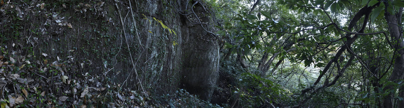 急峻な斜面を衣張山目指して上ったところに石切り場が設けられていた。