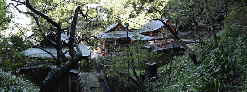 他の寺社と同様に山際が掘削されて神域が構成されている。